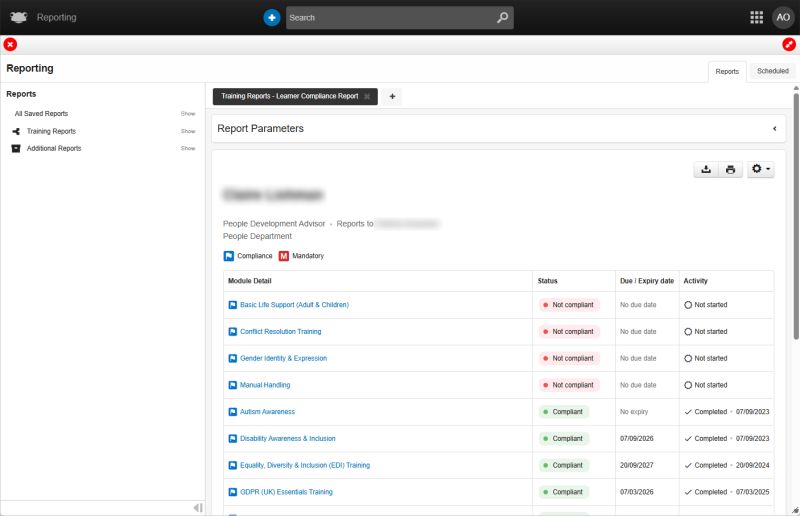 Department managers can drill into team progress, compliance status, and skill development, while executives identify training gaps and mitigate risks organisation-wide. Set up automated, scheduled reports to keep everyone informed and aligned - ensuring timely insights are always at your fingertips.